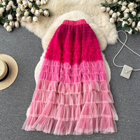 IHOOV Ombre Tulle Midi A-Line Jupe gâteau en maille